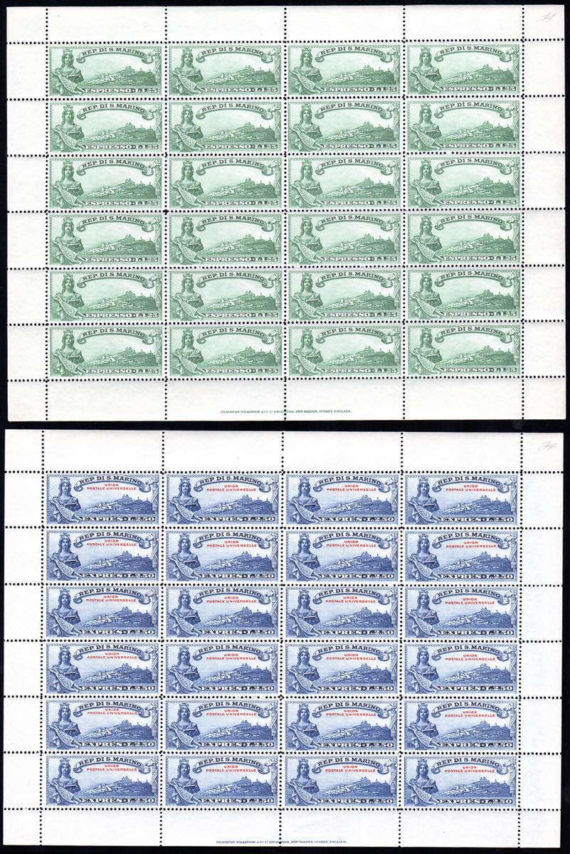 1929 - Libertà e veduta, serie completa (7/8), minifogli di 24 esemplari, gomma originale integra, perfetti. Splendidi. Ferrario.