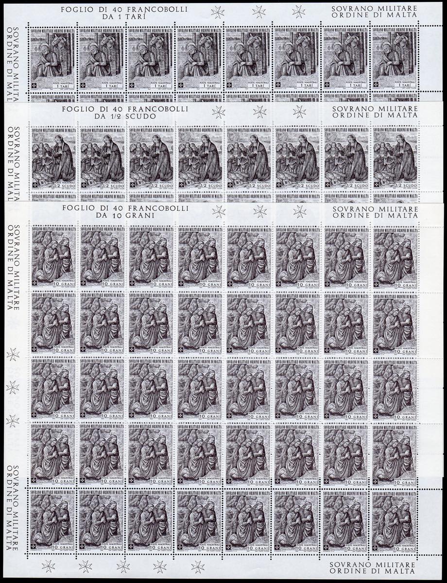 1969 - Natale, fogli completi di 40 esemplari, tutti senza filigrana (47/49 nota), senza gomma, come sempre, perfetti. Rari.