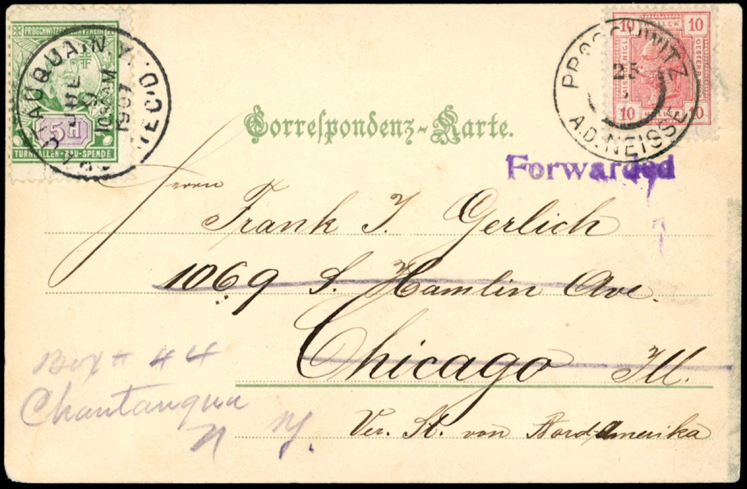 Lot 3053 - AUSTRIA/STATI UNITI D'AMERICA 1907 - Redirected with ...