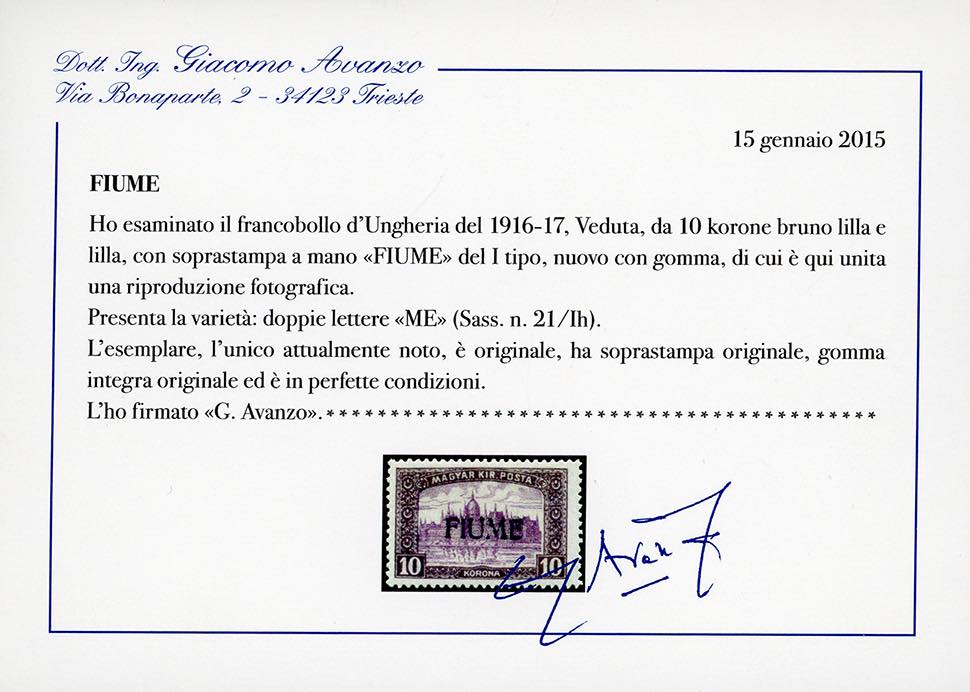 1918 - 10 k. Veduta, soprastampa a mano del I tipo, doppie lettere "ME" (21/Ih), gomma originale integra, perfetto. UNICO ESEMPLARE NOTO, ... Read more