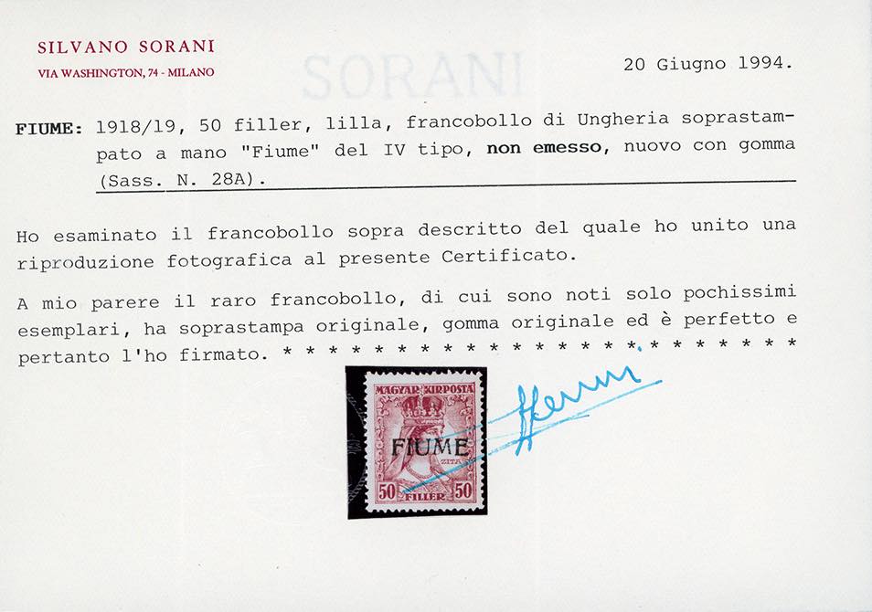 1918 - 50 f. lilla Zita, soprastampa a mano del IV tipo, non emesso (28A/IV), gomma originale, lieve traccia di linguella, perfetto. Molto ... Read more