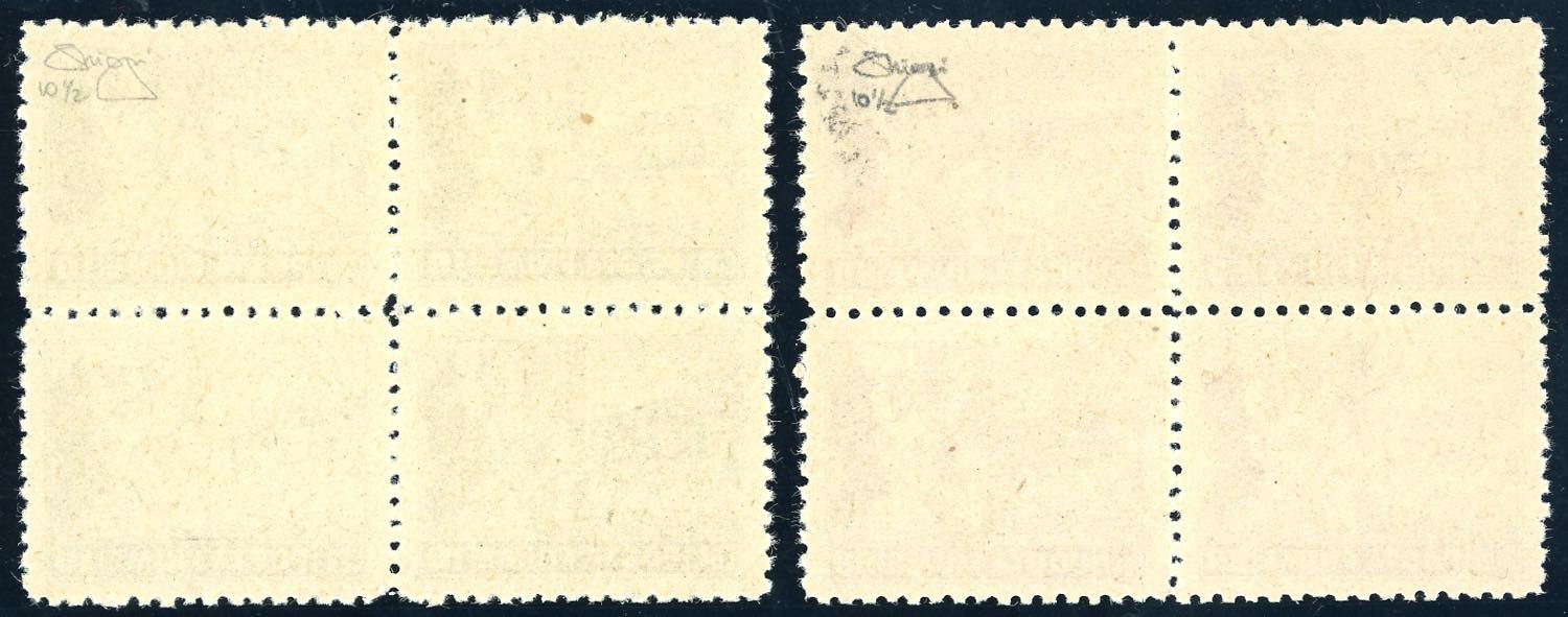 1919 - 60 cent. e 10 cor. Posta Fiume, dent. 10 1/2 (55/II,56/II), blocchi di 4, gomma originale integra, perfetti. Rari. Cert. Oro ... Read more