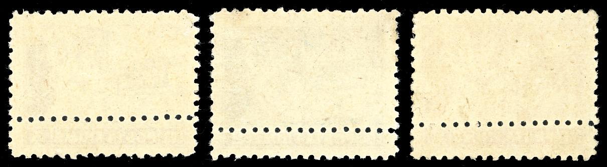 1919 - 1 cor., 2 cor. e 5 cor. Posta Fiume, non emessi, dent. 10 1/2, tutti con doppia dentellatura orizzontale (58/Ib,59/Ib,61/Ib), gomma originale integra, perfetti. Insieme di grande rarità.