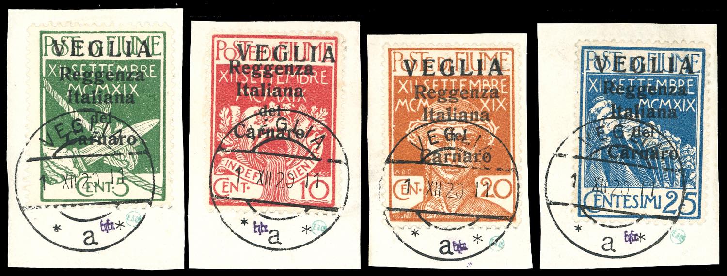 1920 - Soprastampati in caratteri grandi, serie completa (1/4), perfetti, usati su frammento. Ferrario.