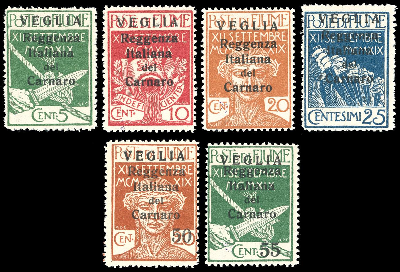 1920 - Soprastampati in caratteri piccoli, serie completa (5/10), gomma originale, perfetti.