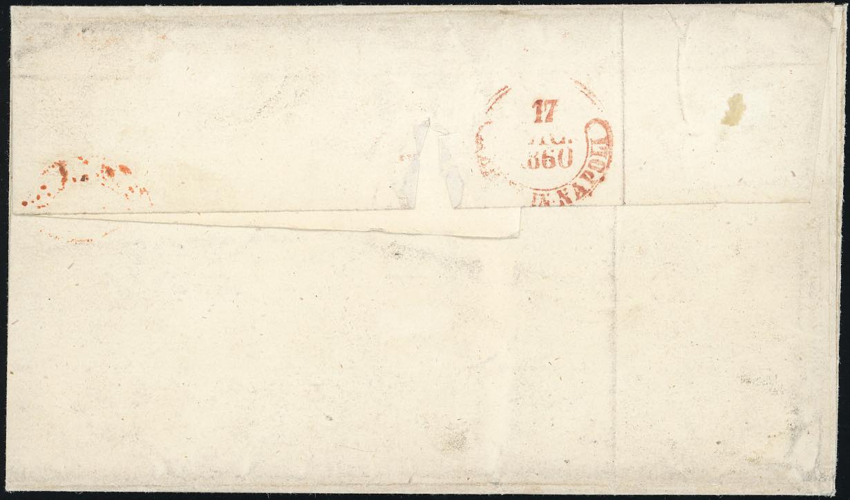 1860 - 1 grano rosa carminio, II tavola (4), striscia orizzontale di quattro, perfetta, su sovracoperta di lettera da Gioja 14/12/1860 ... Read more