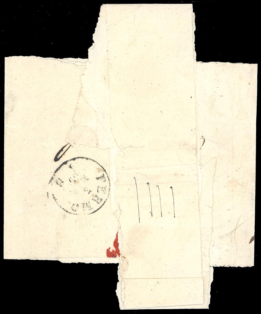 1869 - 80 cent. rosa chiaro, 20 cent. rosso bruno (30,27), perfetti, su fresca fascetta completa di porto multiplo da Roma a Monte Granaro, al verso transito di Fermo 5/3/1869. Affrancatura elevata ed estremamente rara per questo tipo di oggetto, di splendida qualità. Raybaudi, cert. Ferrario. Ex coll. Imperato.