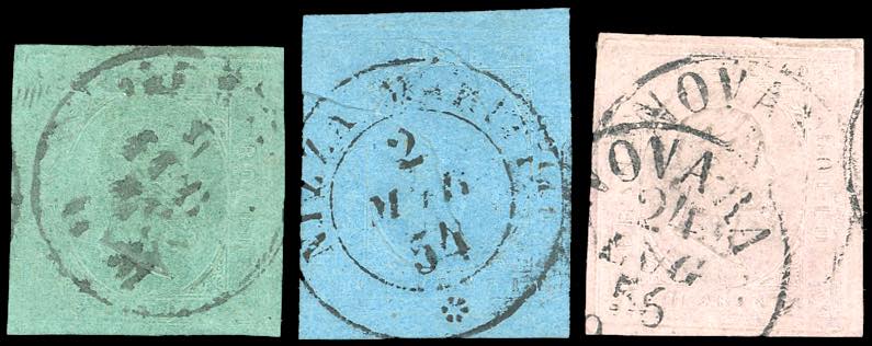 1853 - Seconda emissione, serie completa (4/6), usati, perfetti. Freschi e ben marginati. A.Diena, cert. Ferrario.