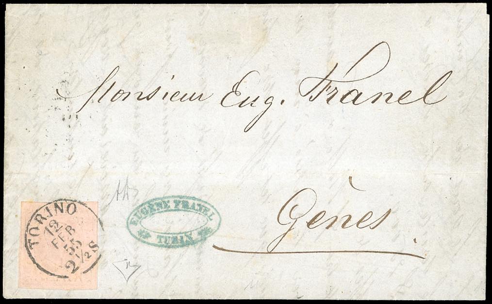 1855 - 40 cent. rosa chiaro (6), perfetto, e ben marginato, isolato su lettera da Torino 12/2/1855 a Genova. Bella lettera per l'interno di ... Read more
