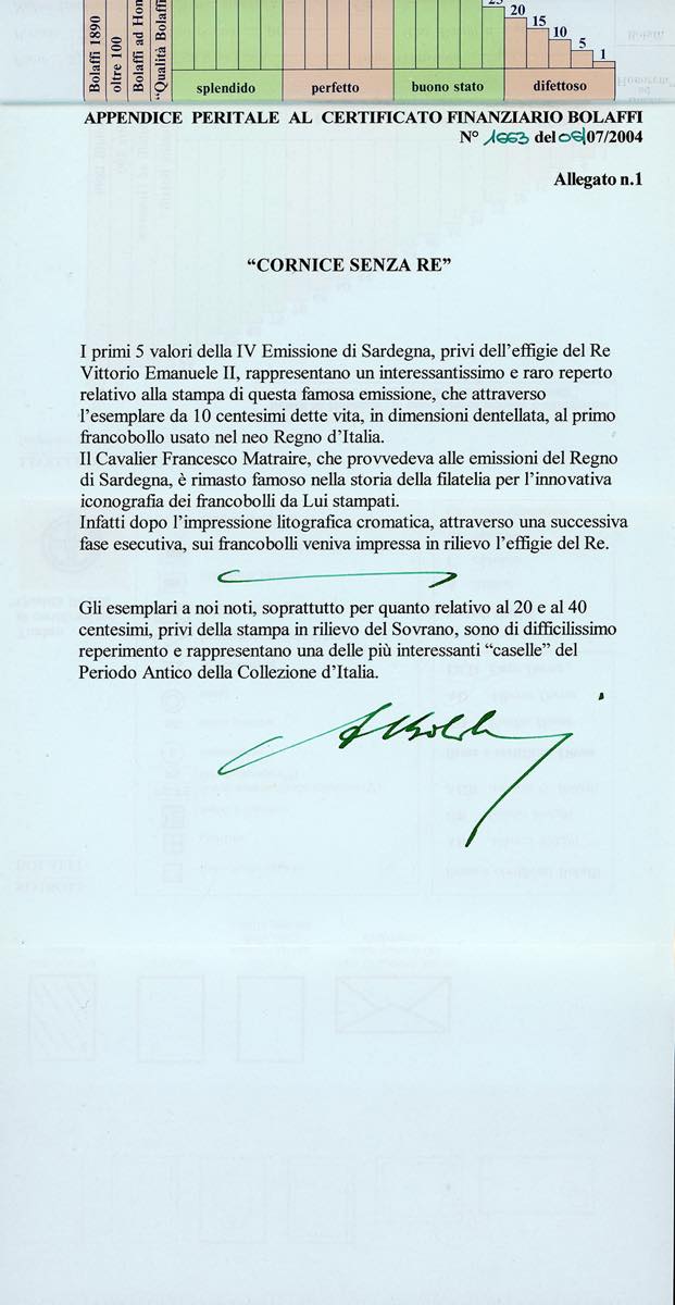 1863 - 5 cent., 10 cent., 20 cent., 40 cent., 80 cent., IV emissione, SENZA EFFIGIE, francobolli naturali (cat.Bolaffi 10B,11B,12B,13B,14B, € 78.000+), blocchi di 4, ad eccezione del 10 cent. in striscia di 4, gomma originale integra, un solo francobollo da 10 cent. con linguella, perfetti e molto freschi. Rarissimo insieme di ottima qualità. Cert. Finanziario Bolaffi 50%.