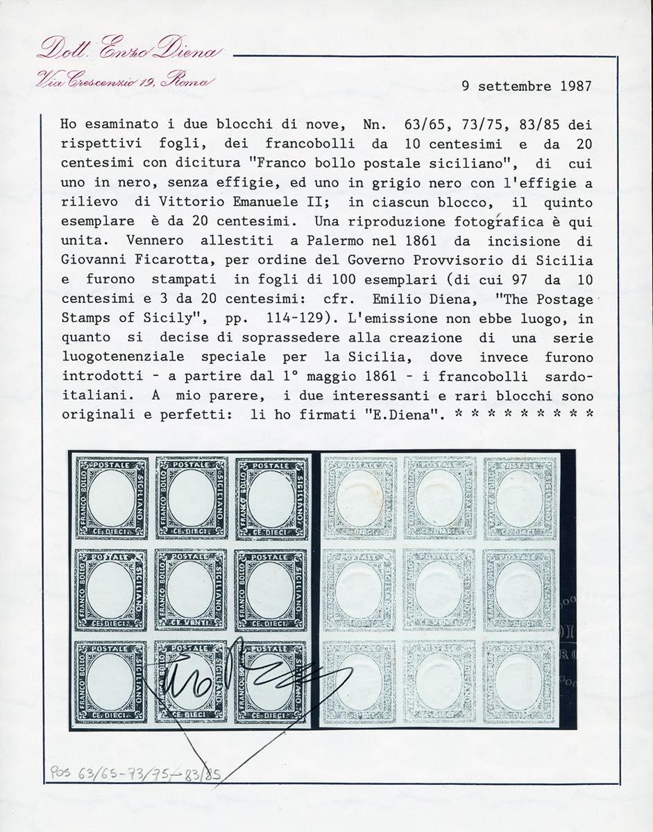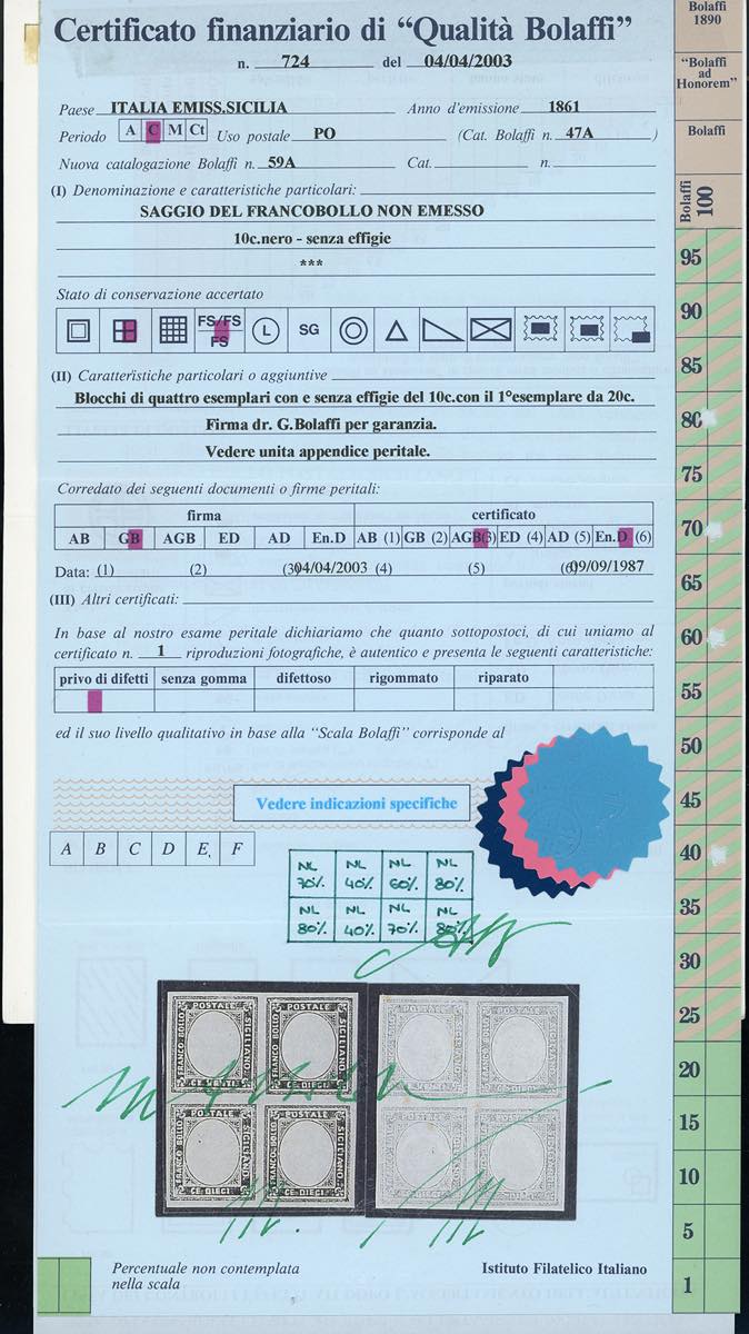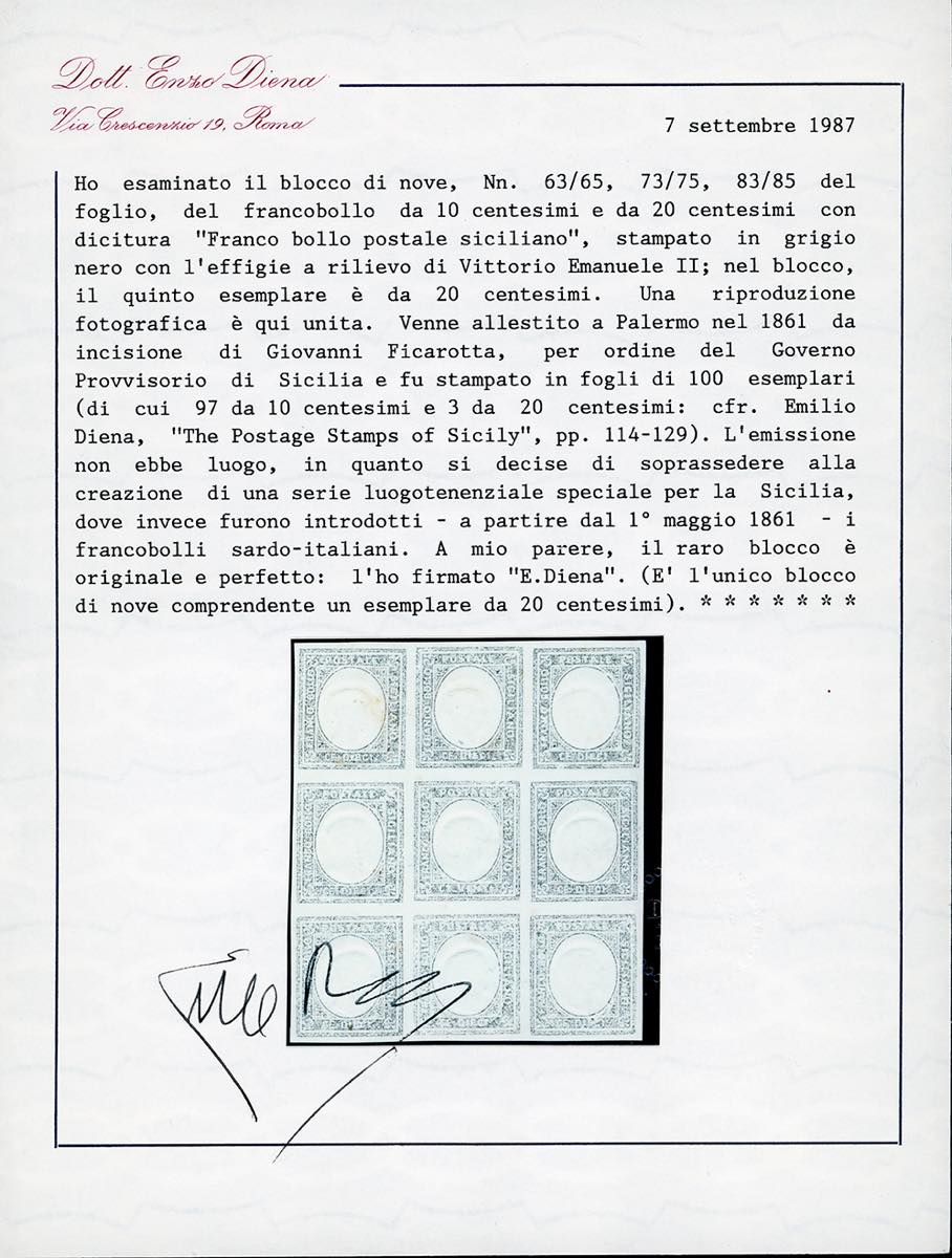 Lot 957 - 1860 - Saggi Ficarotta. Eccezionale insieme composto dai ...