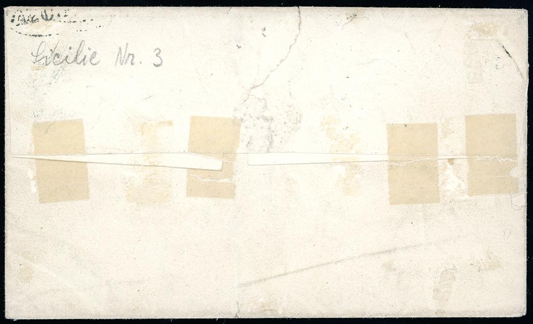 SIRACUSA, verde nerastro, punti 12 - 2 grana azzurro, carta di Napoli, II tavola (7a), perfetto, su lettera per Palermo 23/3/1859. A. ed ... Read more