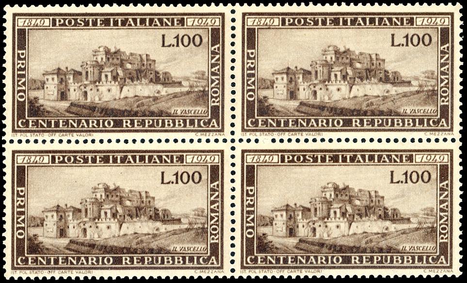 Lot 1384 - 1949 - 100 lire Romana (600), ottima centratura, blocco di ...