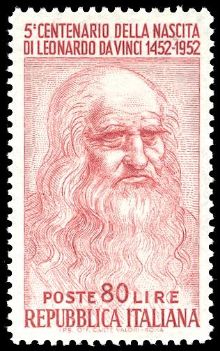 1952 - 80 lire Leonardo, dent. 13 1/4 x 13 1/4 carta pergamino, filigrana posizione CD (688,Sass.Spec.188-CD), gomma originale integra, perfetto. Raro. Cert. Ferrario.