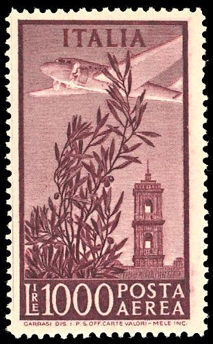 1948 - 1.000 lire Campidoglio, filigrana posizione DA, dent. 14 x 14 (145,Sass.Spec.26-DA), gomma originale integra, perfetto. Raro. Cert. E.Diena.