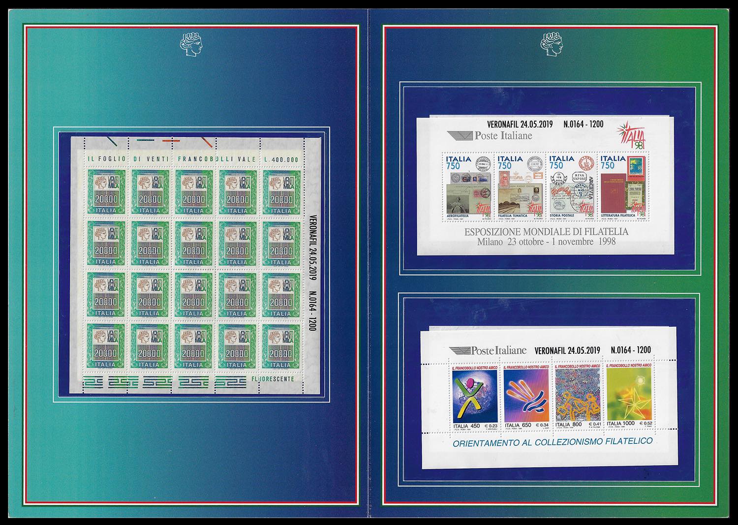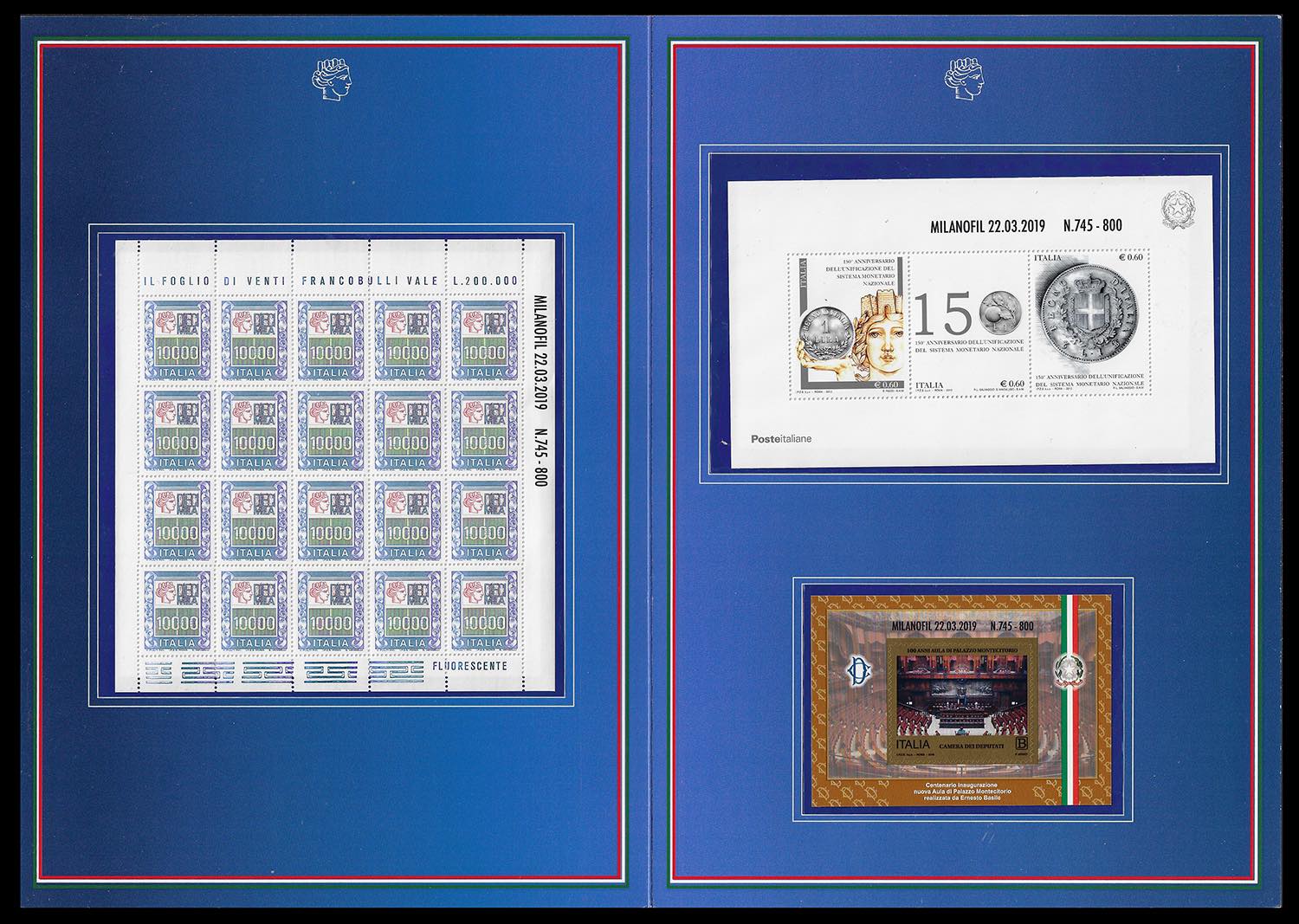 Lot 1443 - 2019 - Folder "Valori nel tempo" di Milanofil e Veronafil, ...