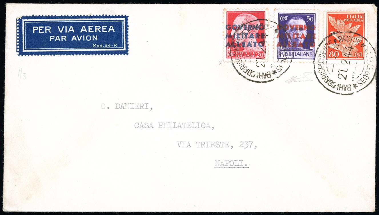 AMGOT OCCUPAZIONE ANGLO-AMERICANA NAPOLI 1944 - 20 e 50 cent. soprastampati (10,12), in affrancatura mista con 80 cent. posta aerea ... Read more