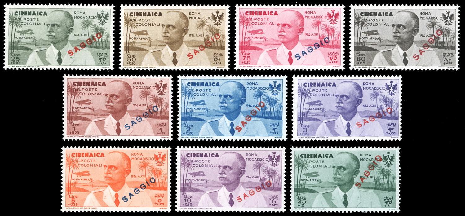 POSTA AEREA 1934 - Volo Roma - Mogadiscio, serie completa soprastampati "SAGGIO" (A30/A39), nuovi, gomma originale integra, perfetti. Rari ... Read more