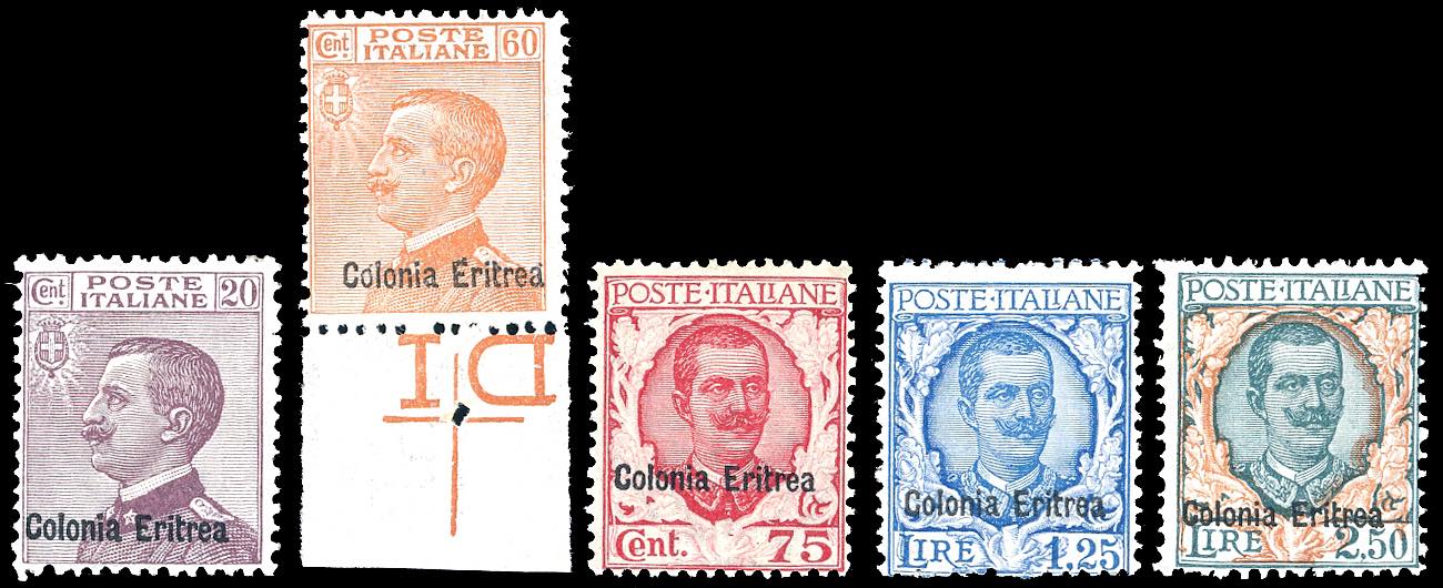 1928/29 - Soprastampati, serie completa (123/127), gomma originale integra, perfetti. Molto freschi. Cert. Ferrario.
