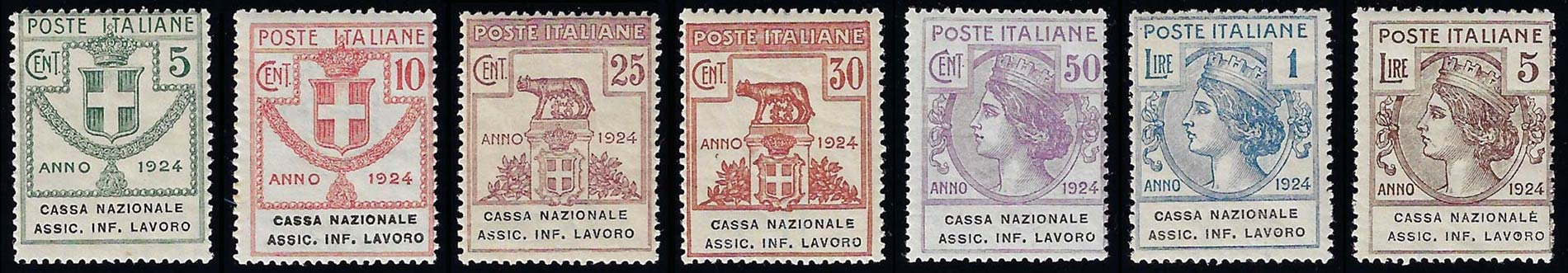 CASSA NAZIONALE ASSIC.INF.LAVORO 1924 - Serie completa (17/23), gomma integra, perfetti.