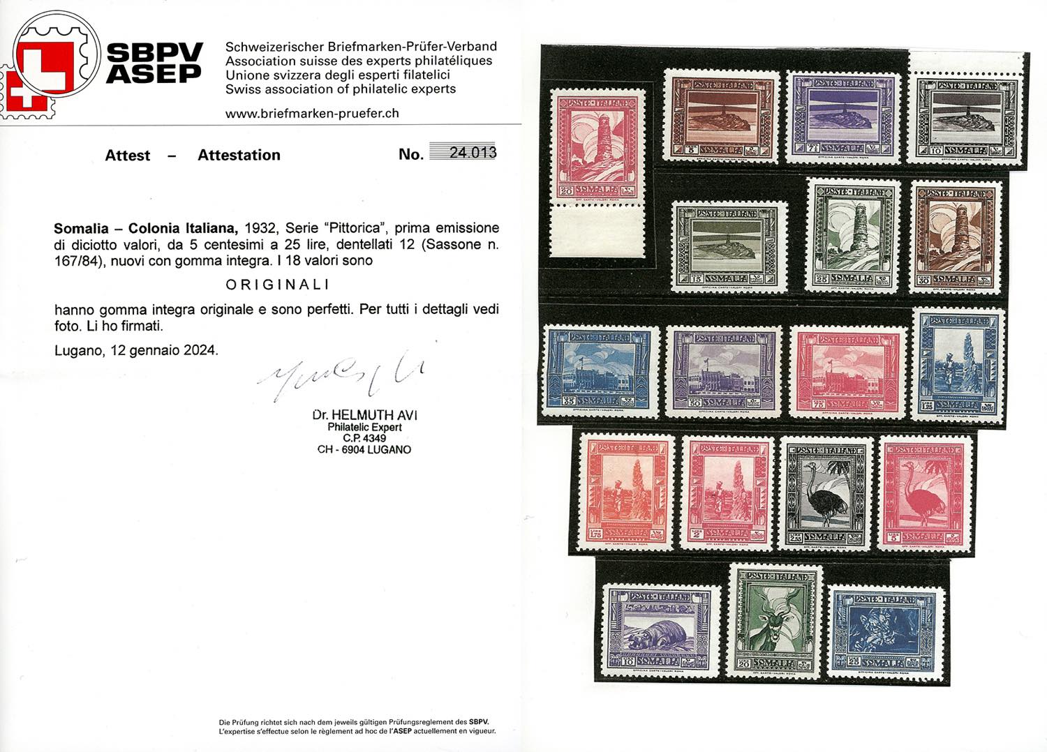 1932 - Pittorica, dent. 12, serie completa (167/184), gomma originale integra, perfetti. Cert. Avi.