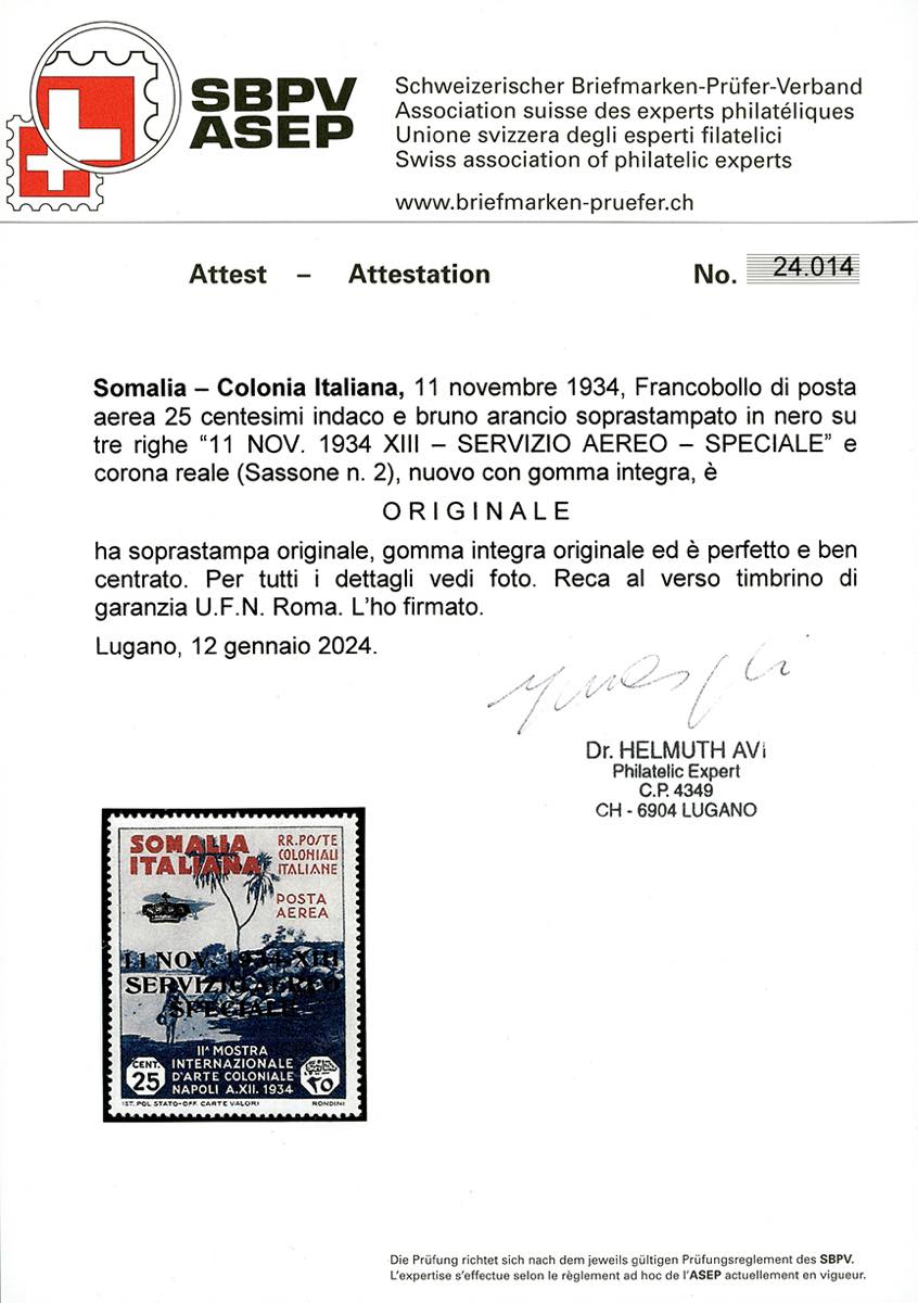 Lot 1754 - SERVIZIO AEREO 1934 - 25 cent. soprastampato Servizio Aereo ...