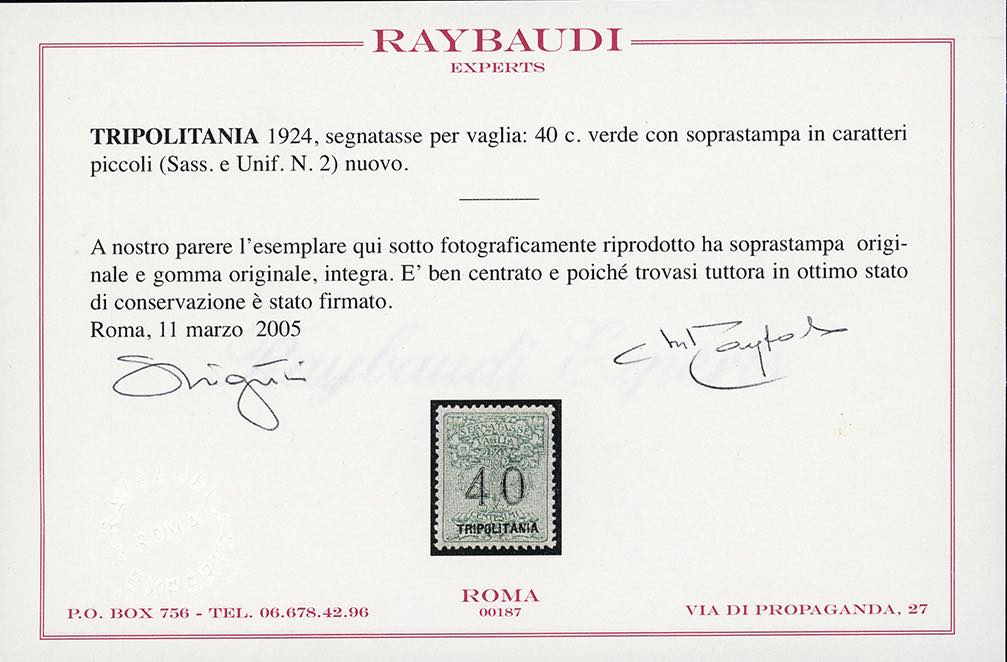Lot 1783 - SEGNATASSE PER VAGLIA 1924 - 40 cent. verde, soprastampa in ...