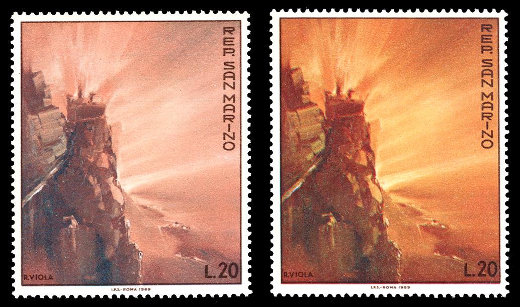 1969 - 20 lire Giornata Filatelica (788), stampato in colori diversi da quelli adottati, gomma originale integra, leggermente bicolore, ... Read more
