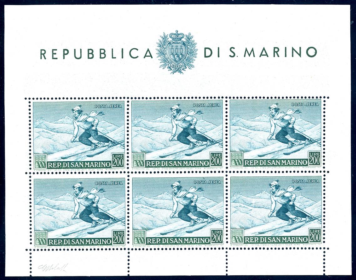 Lot 1850 - 1953 - 200 lire Sciatrice, foglietto (15), gomma originale ...