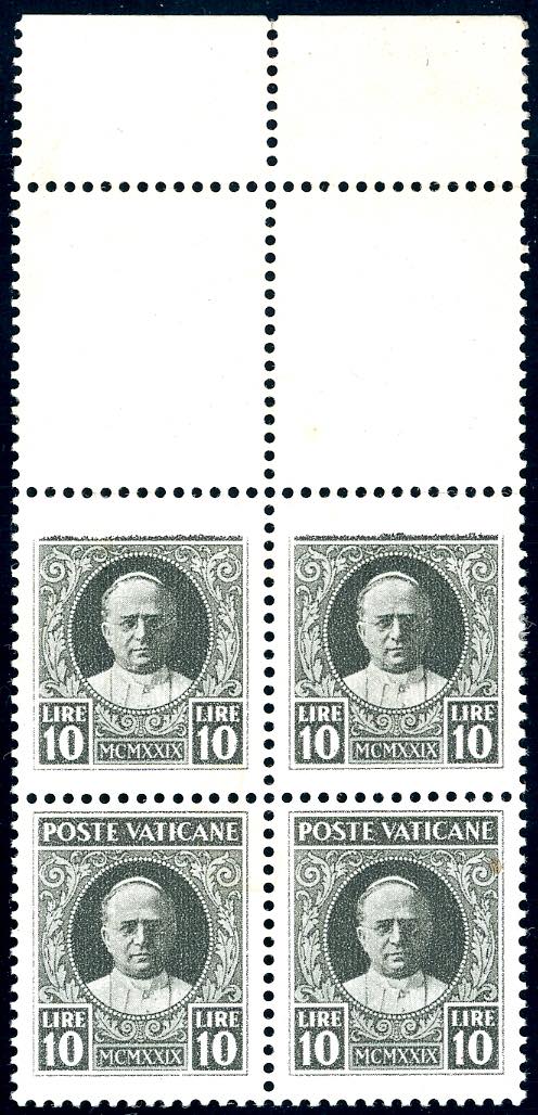 1929 - 10 lire Conciliazione, blocco di sei esemplari, i due esemplari superiori con la stampa totalmente mancante, i due centrali con ... Read more