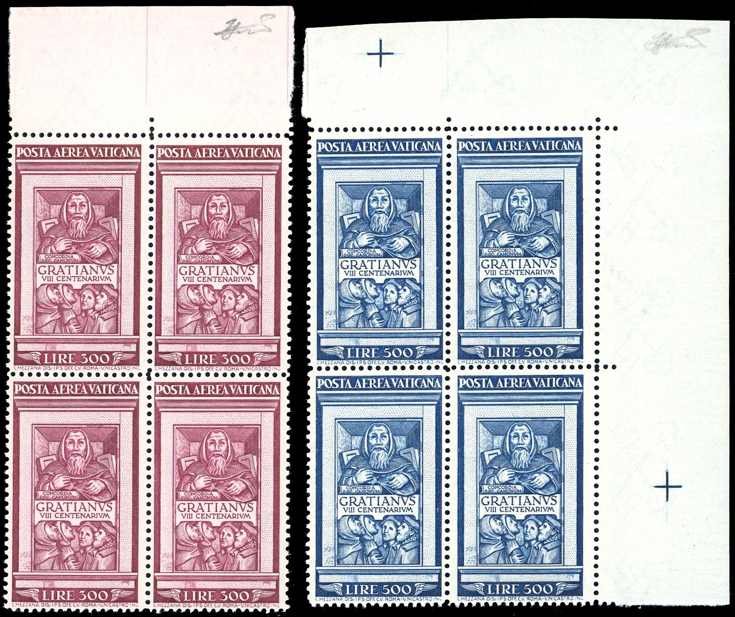 POSTA AEREA 1951 - Graziano, serie completa (20/21), blocchi di quattro, bordo o angolo di foglio, nuovi, gomma originale integra, ... Read more