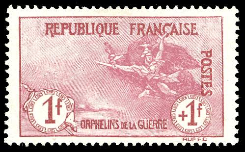 FRANCIA 1917/19 - 1 + 1 fr. Orfanelli (154), gomma originale integra, perfetto e molto fresco. Cert. Ferrario.