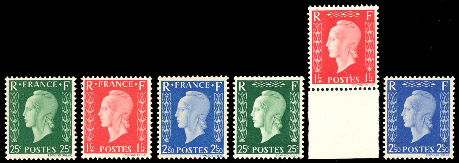 FRANCIA 1945 - Marianna di Dulac, non emessi, serie completa (701A/701F), gomma originale integra, perfetti. Molto freschi.