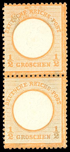 GERMANIA REICH 1872 - 1/2 g. Aquila, grande scudo (15), coppia, gomma originale integra, perfetta. Cert. Krug.