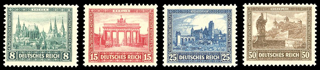 GERMANIA REICH 1930 - Iposta, serie completa (427/430), gomma originale integra, perfetti e molto freschi. Ex coll. Romano.