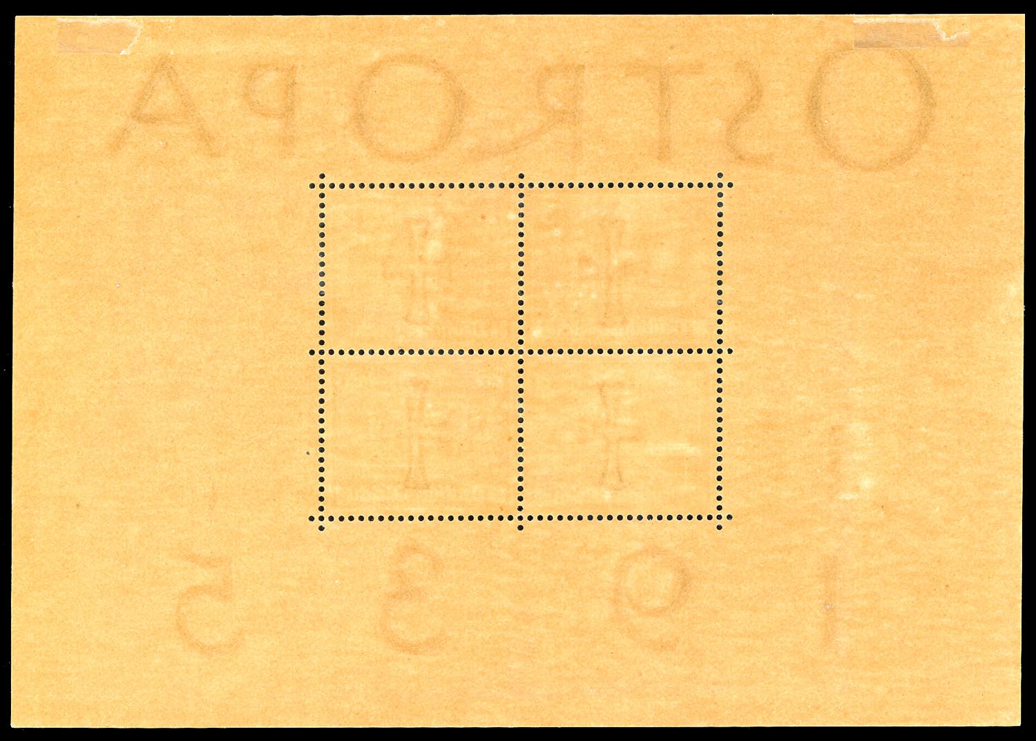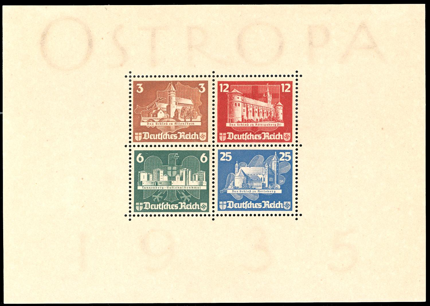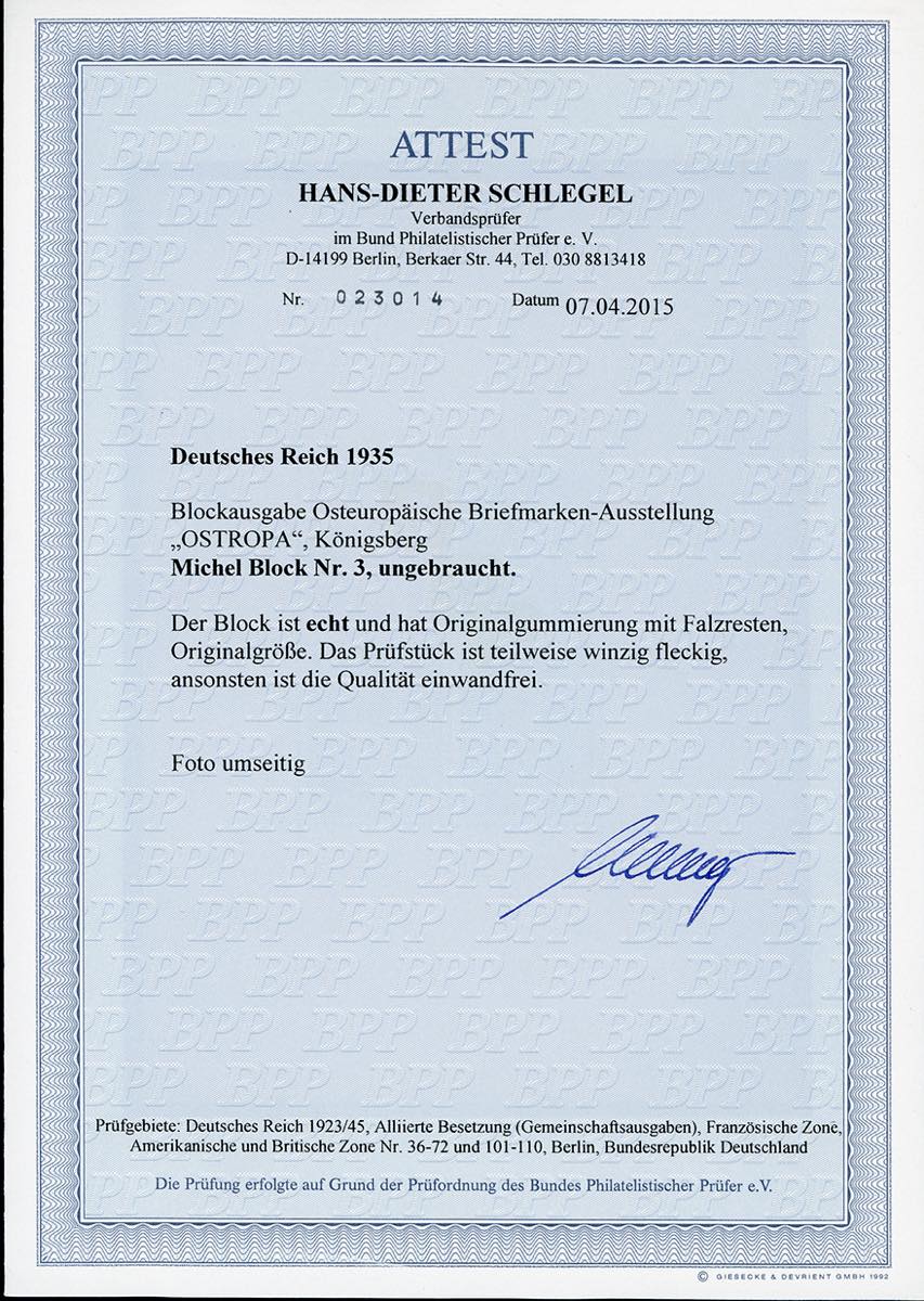 GERMANIA REICH FOGLIETTI 1935 - Ostropa, foglietto (BF3), gomma originale, perfetto. Bello. Cert. Schlegel. Ex coll. Romano.