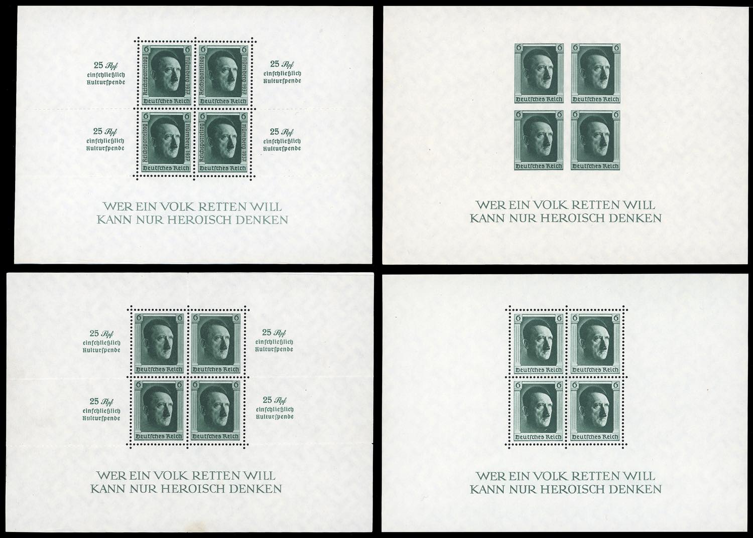 Lot 2003 - GERMANIA REICH FOGLIETTI 1937 - Hitler, i quattro foglietti ...