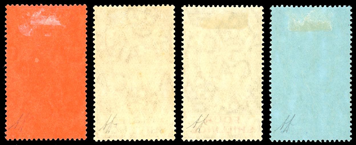 GIBILTERRA 1912/24 - 2 s., 4 s., 8 s., 1 £ Giorgio V (69/72), gomma originale, MLH, linguella leggera, perfetti e molto freschi. A.Diena.