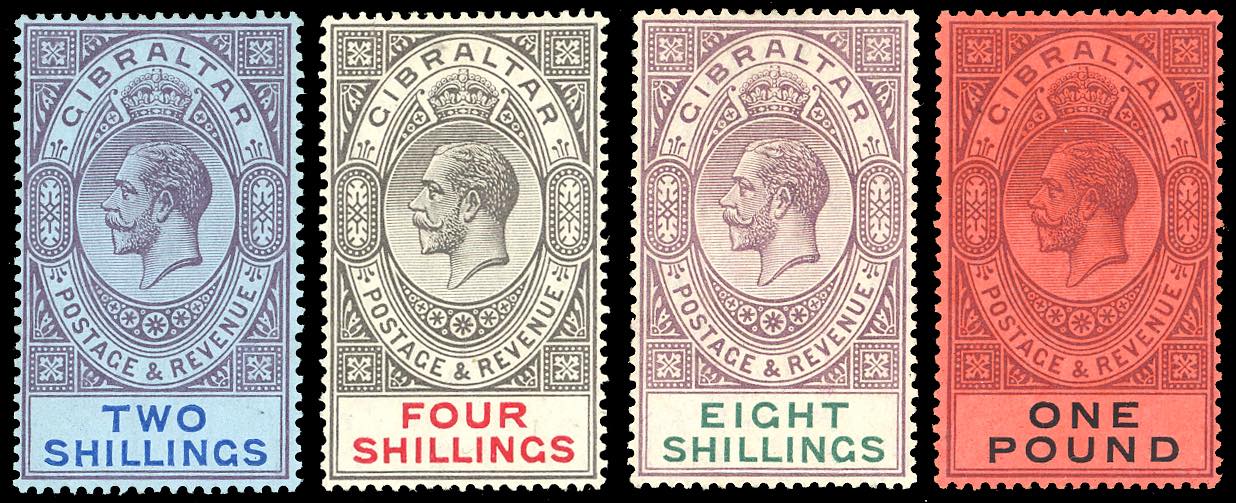 Lot 2010 - GIBILTERRA 1912/24 - 2 s., 4 s., 8 s., 1 £ Giorgio V ...
