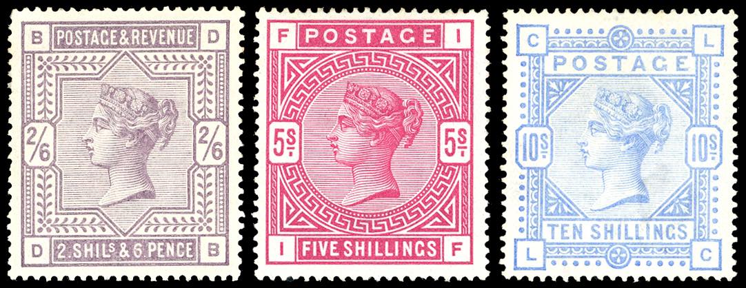 GRAN BRETAGNA 1883/84 - Alti valori Regina Vittoria, serie completa (86/88), gomma originale integra, MNH, perfetti e molto freschi. Cert. Caffaz.