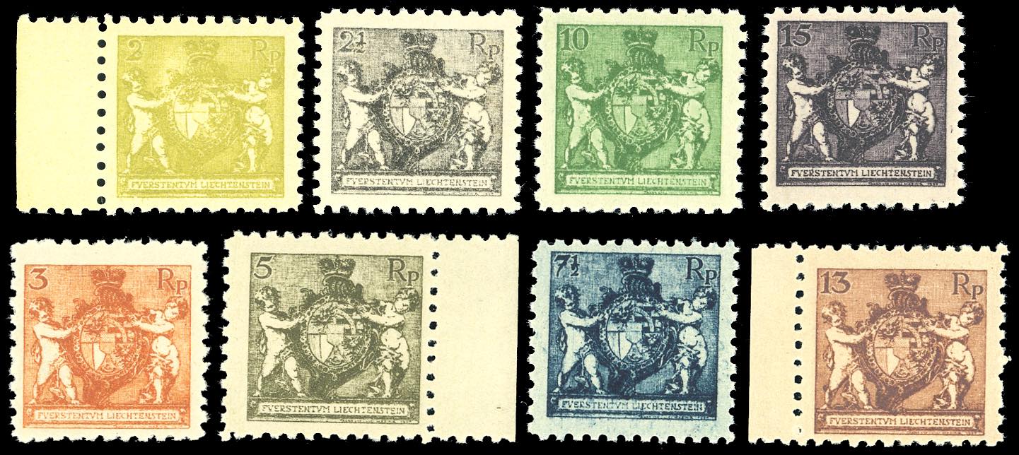 LIECHTENSTEIN 1921 - Stemma, dent. 9 1/2, serie completa (44A/51A), gomma originale integra, perfetti e di ottima qualità. Splendidi. Alti ... Read more
