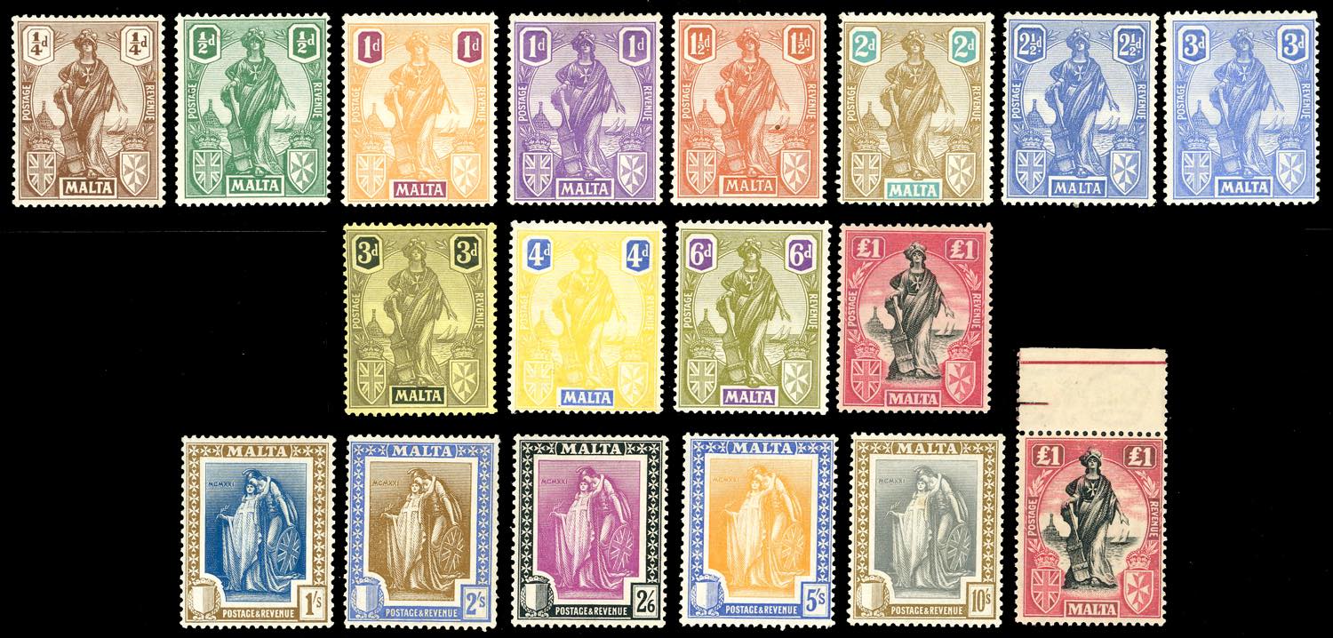 MALTA 1922/25 - Allegorie, serie completa (84/101), gomma originale, MLH, perfetti.