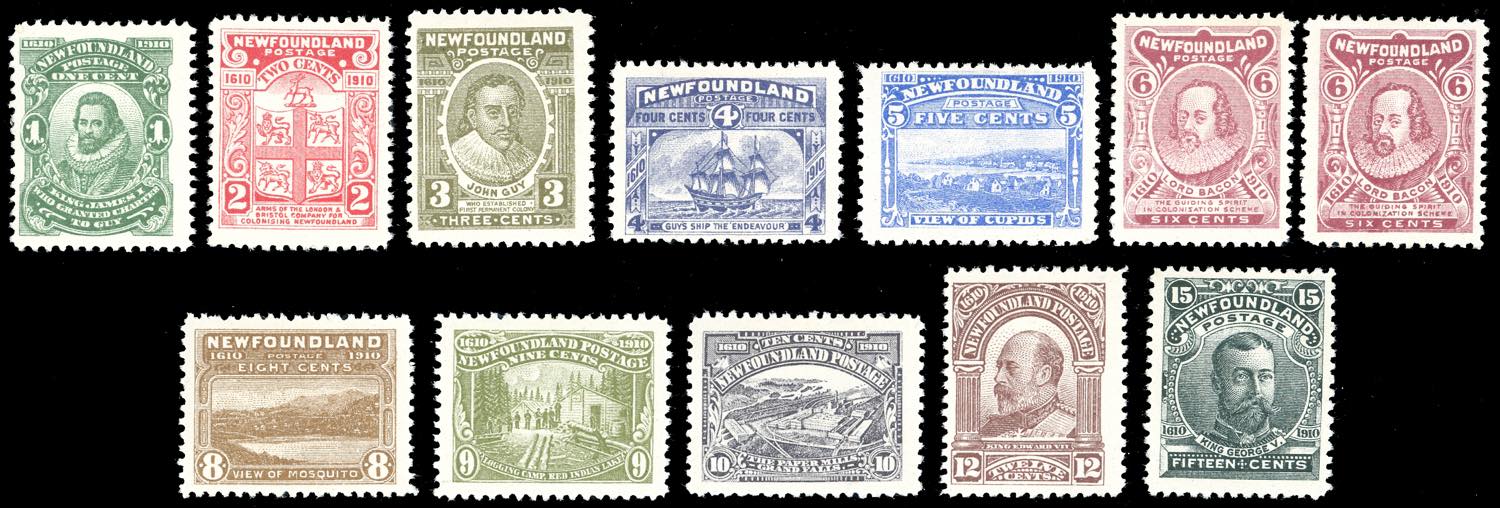 BRITISH COLONIES-NEWFOUNDLAND 1910 - Terzo centenario della colonizzazione, serie completa (SG 95/105, £ 475), gomma originale, MH, perfetti.