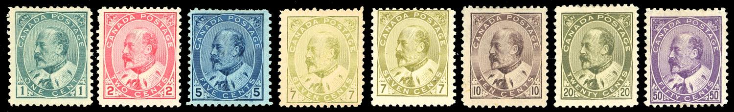 CANADA 1903 - Edoardo VII, serie completa di 7 valori, con il 7 cent. ripetuto in colore diverso (Yv.78/84), gomma originale, MH, perfetti.