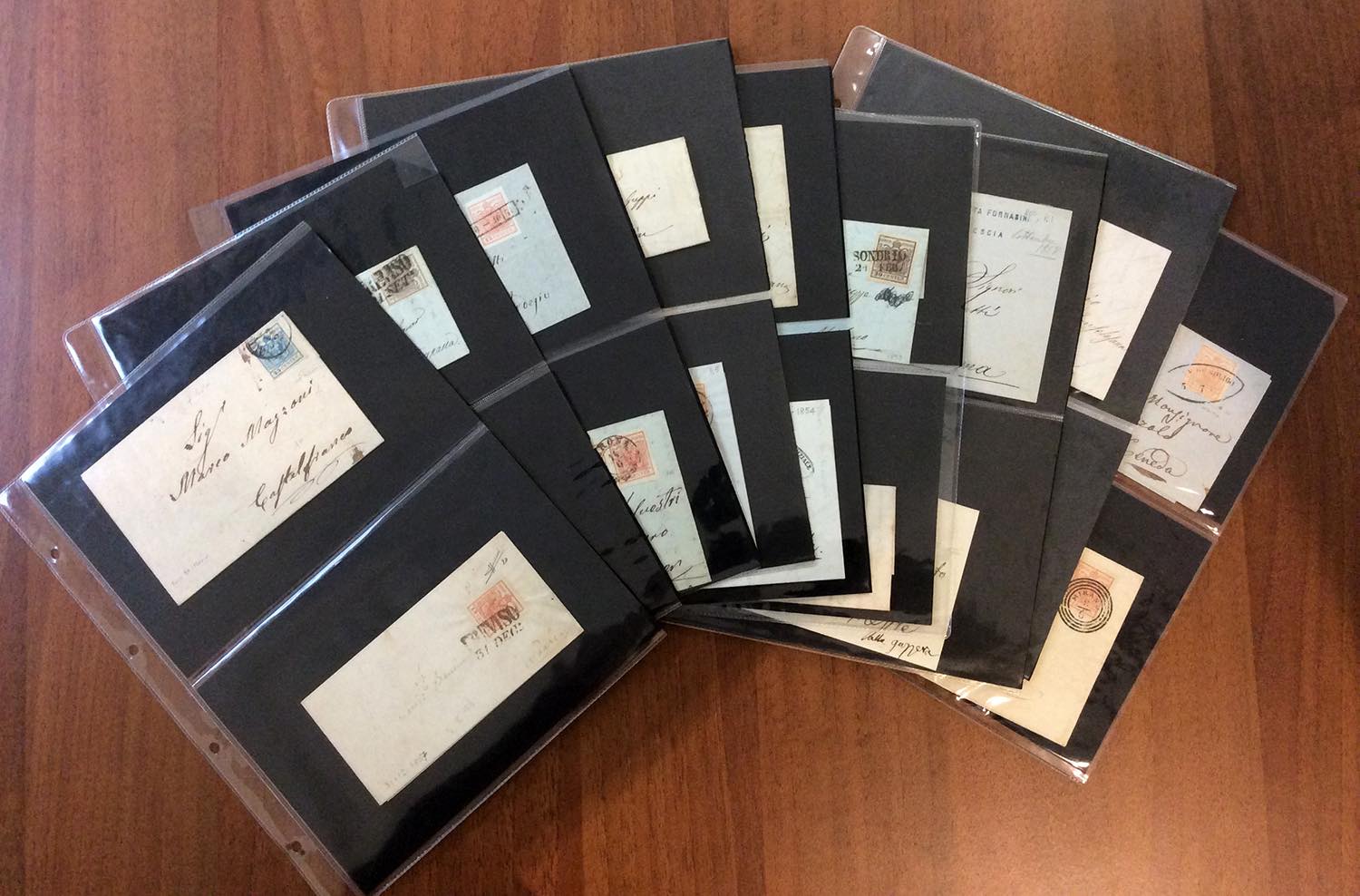 LOMBARDO VEENTO 1850/1861 - Bell'insieme di 36 lettere affrancate con emissioni del periodo, in fogli di raccoglitore. Notate diverse buone presenze, anche firmate. Buon valore di catalogo, ottimo per dettaglio.