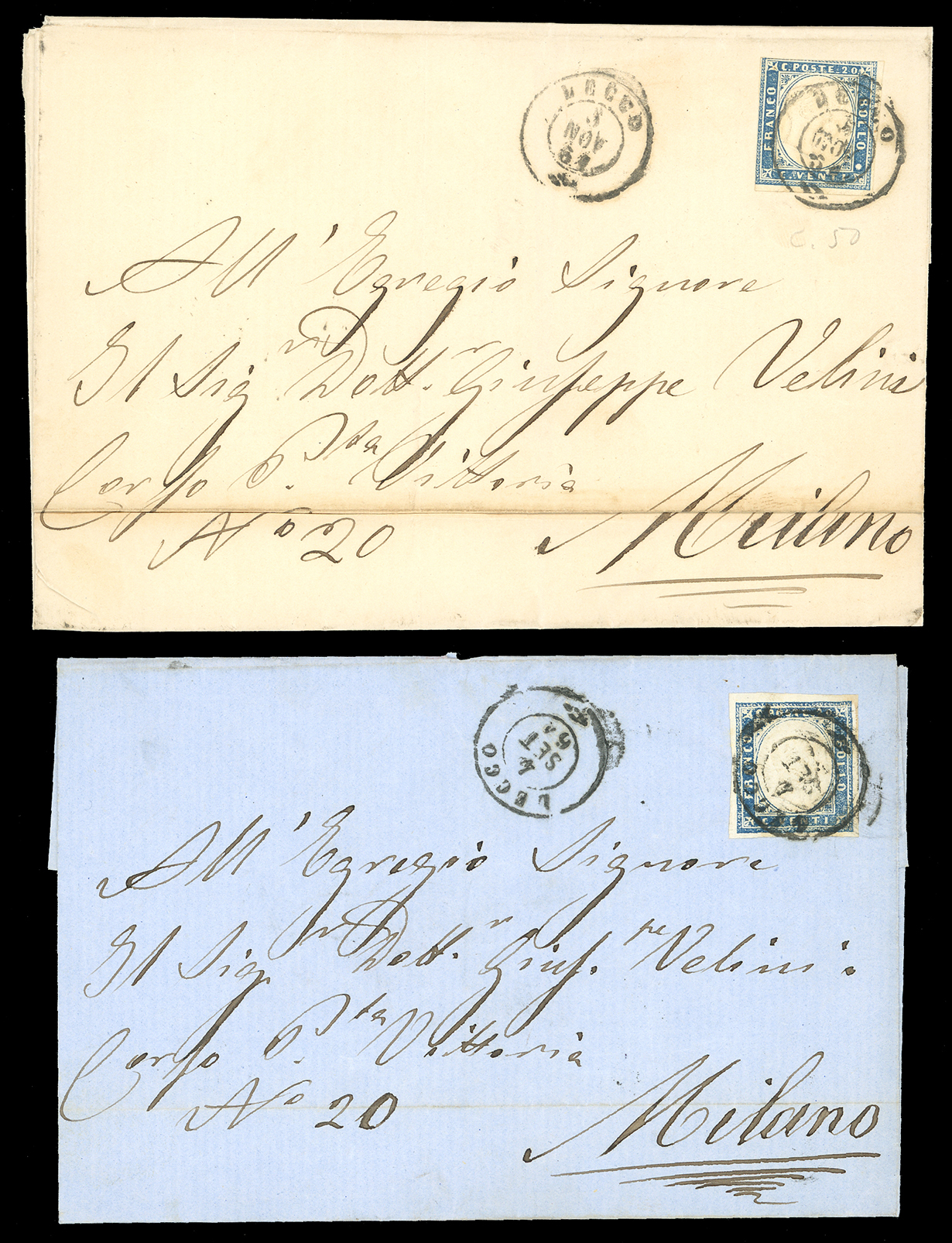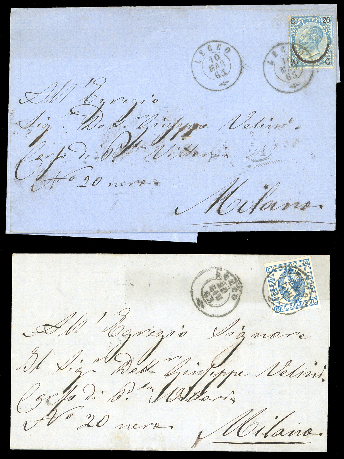 LOMBARDO VENETO/REGNO D'ITALIA 1850/1865 - Bell'insieme di francobolli sciolti e lettere affrancate, tutte con annulli di Lecco. Qualità mista, per specialista.