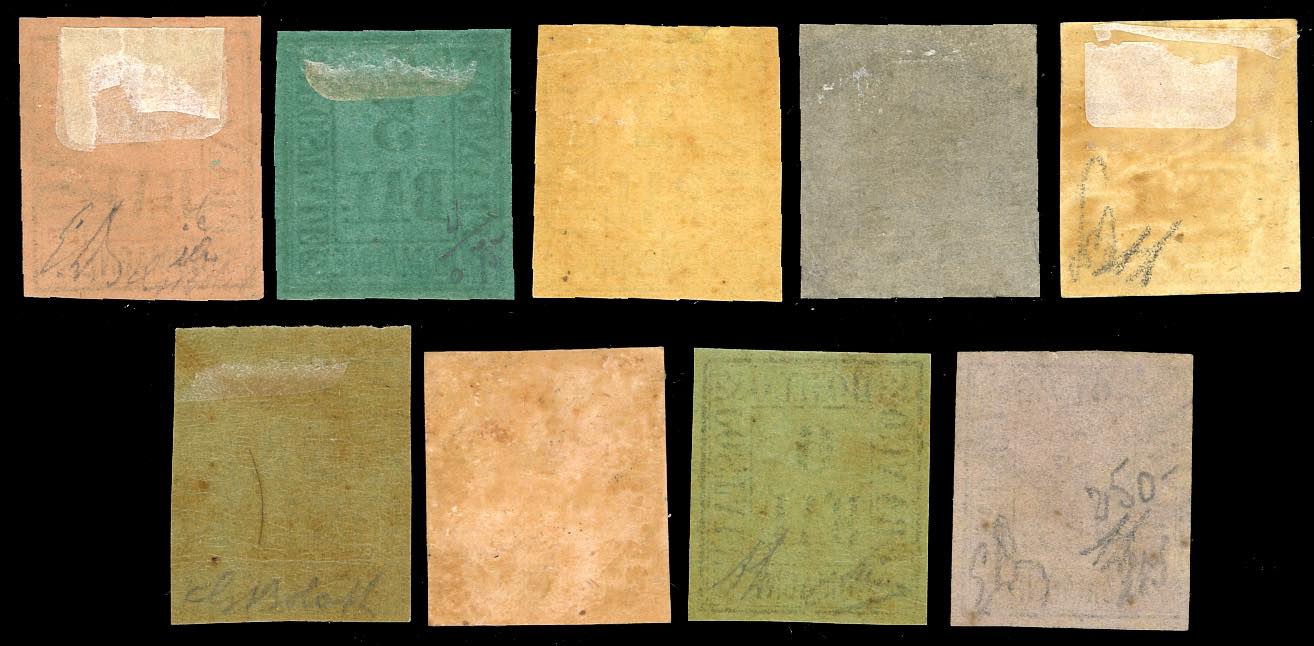 ROMAGNE 1859 - La serie completa (1/9), nuovi gomma originale o usati, perfetti. Diversi esemplari firmati da noti periti.