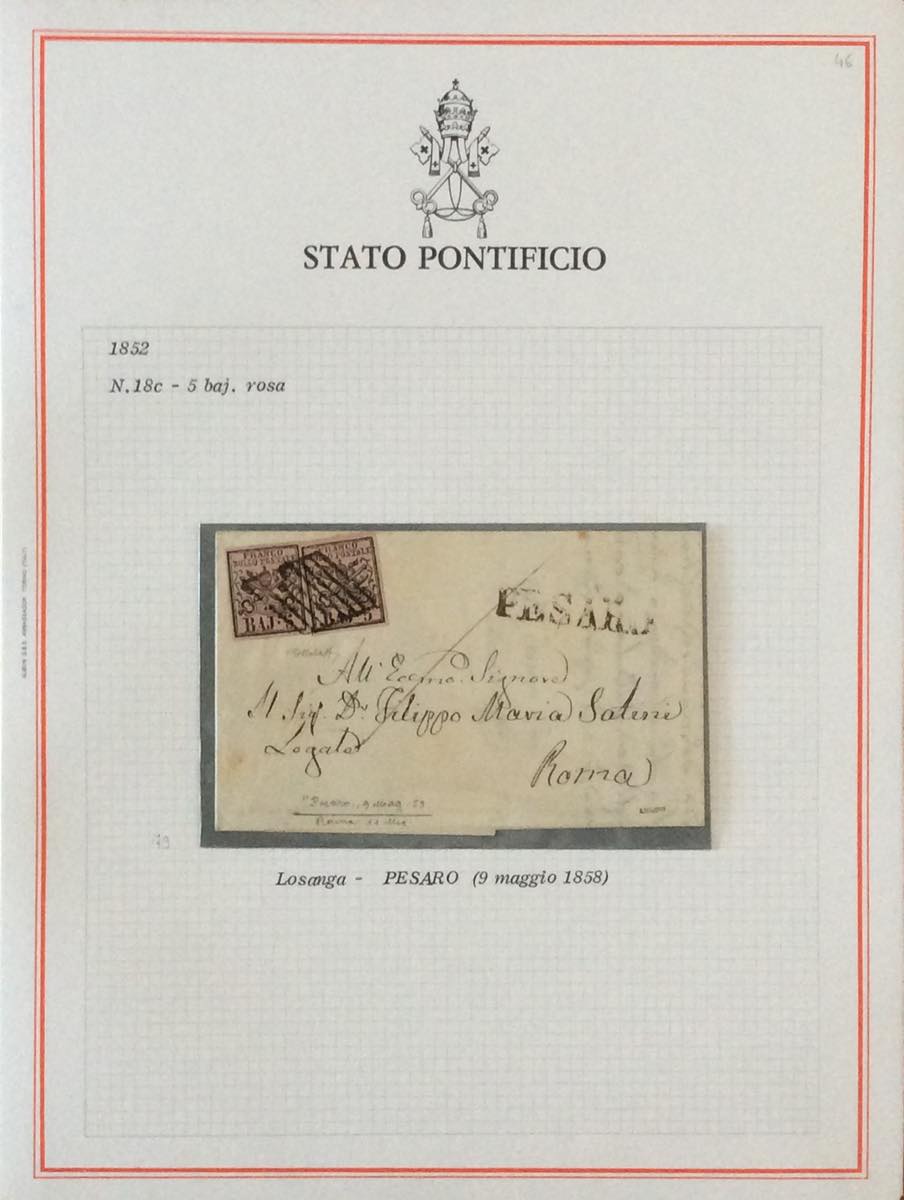 STATO PONTIFICIO 1852/1860 - 5 baj, dodici esemplari usati, anche in coppie o strisce e due lettere, generalmente di ottima qualità. Un cert. Bolaffi.