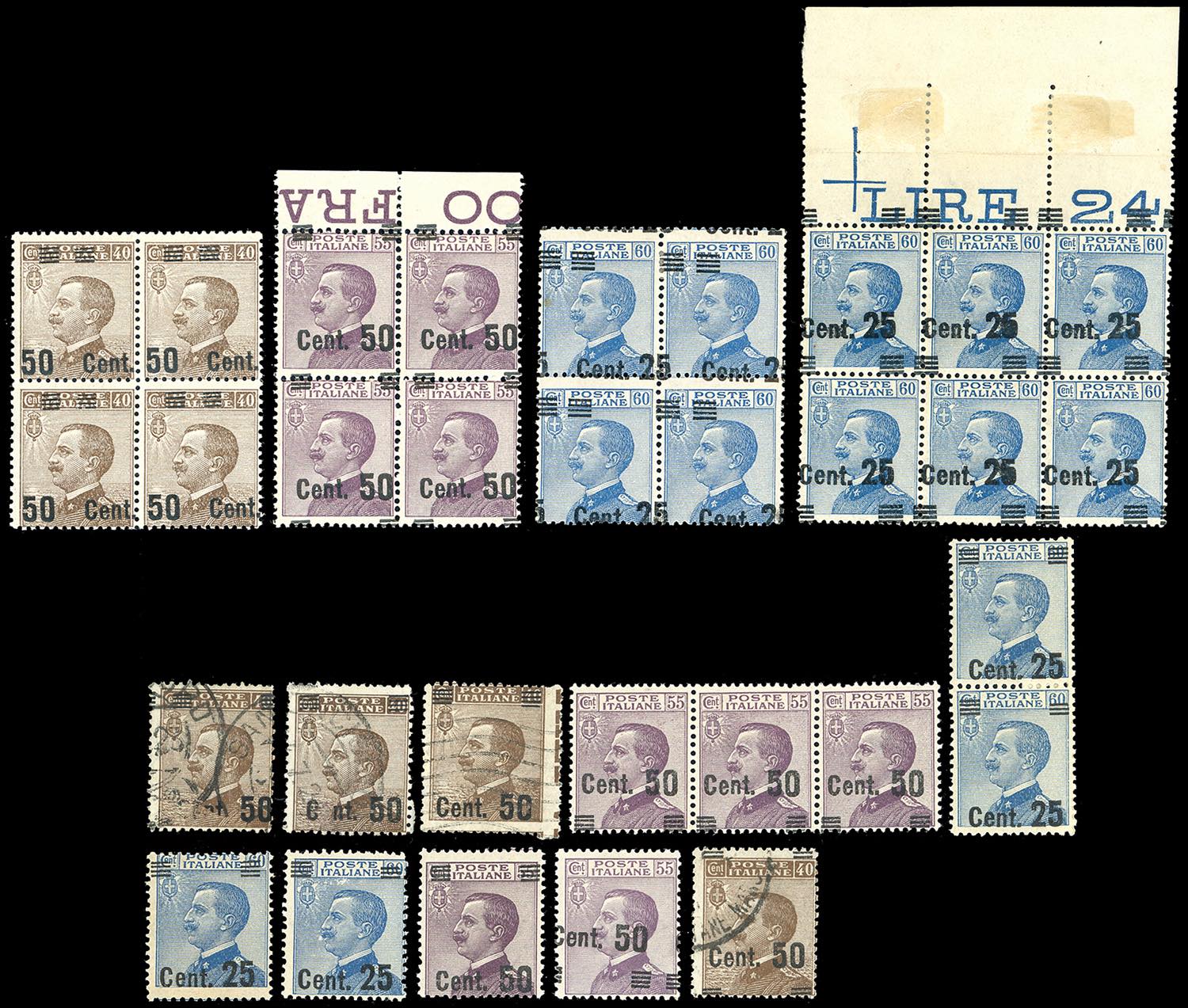 REGNO D'ITALIA 1923/1925 - Michetti soprastampati, splendido insieme di 31 esemplari con varietà, catalogate e non.