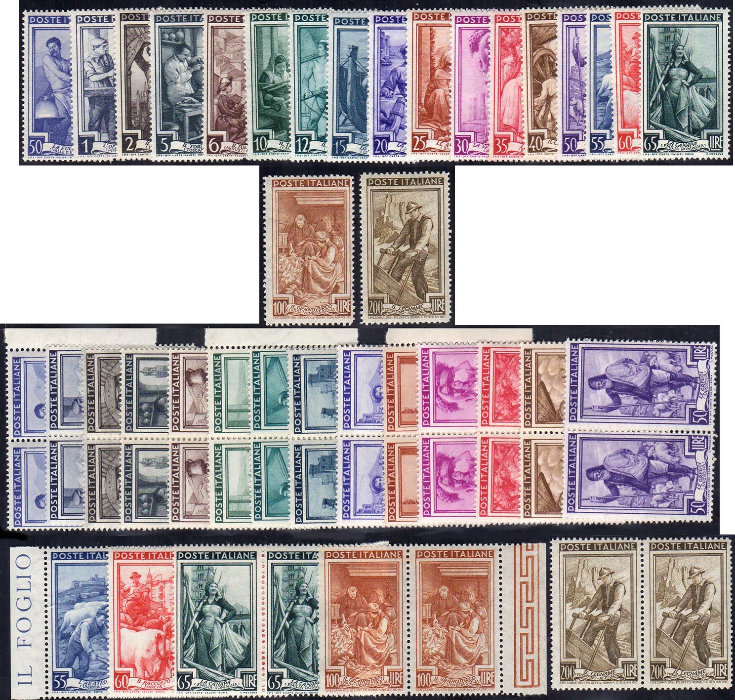 Lot 1483 - 1950 - Lavoro, filigrana ruota (634/650), tre serie, gomma ...